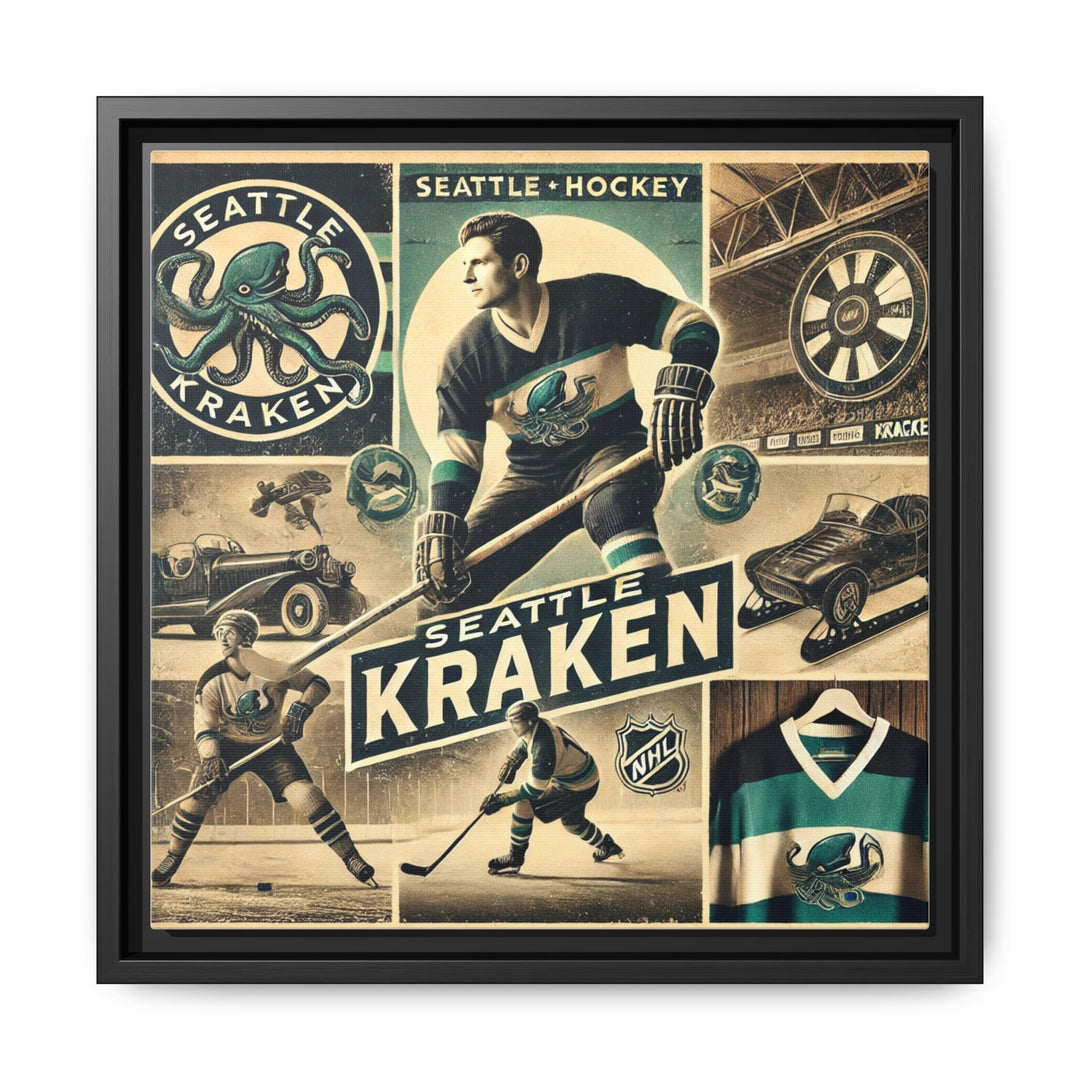 "Vintage Seattle Kraken" - Matte Canvas, Framed